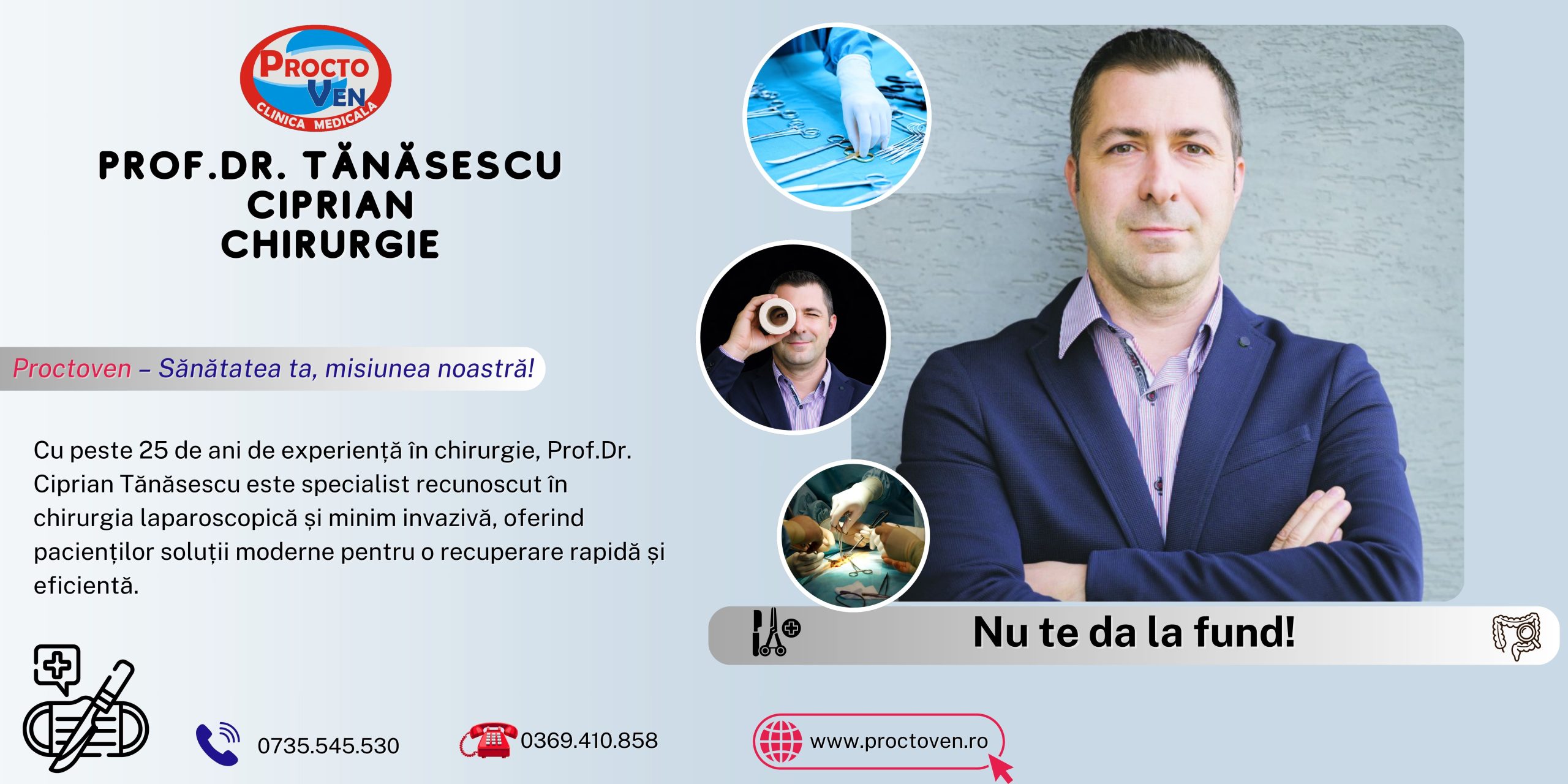 Departamentul de Chirurgie realizează intervenții pentru tratarea afecțiunilor interne și traumatice, asigurând siguranța și recuperarea pacienților.